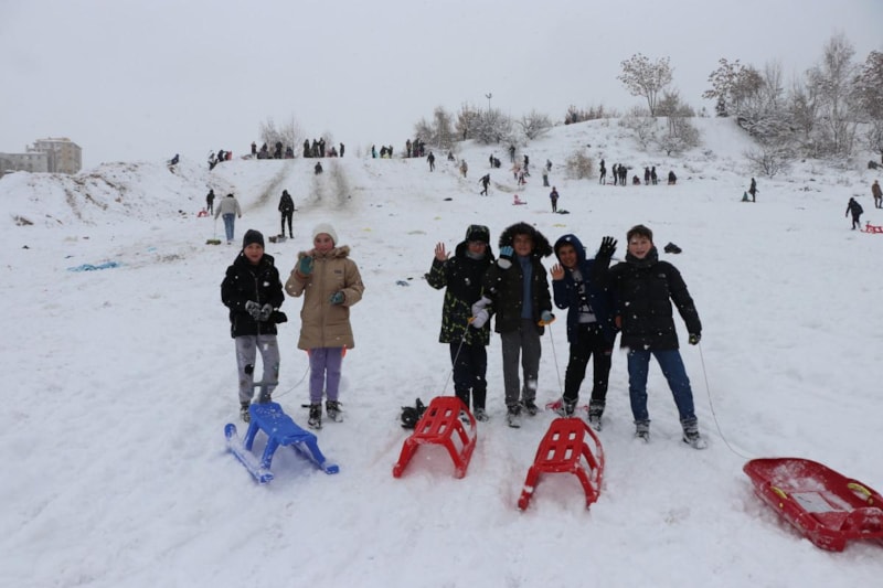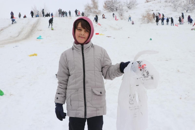 Ecrin Mandıracı ise “Burası çok güzel. Bizim için kayak merkezi. Herkes burayı tercih ediyor. Evimize yakın olduğu için burası bize iyi geliyor. Plastik bir kayak aparatım var onunla kayıyorum. İsteyen poşet ve tepsi ile de kayıyor” diye konuştu.