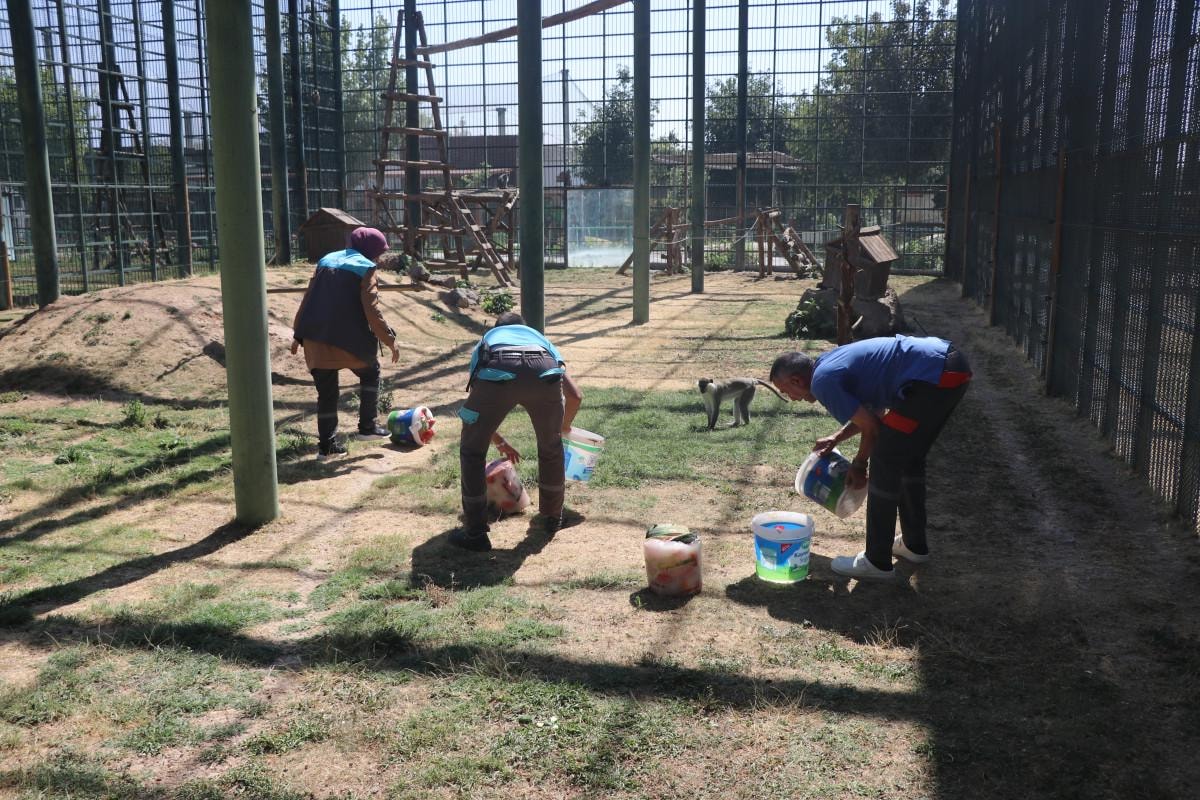 Hayvanat Bahçesi sorumlusu Kaan Erkekoğlu, "Hayvanat bahçemizde 153 türden yaklaşık olarak 1600 tane hayvan bulunmaktadır. Yaz ayları ile birlikte sıcaklıkların 40 dereceleri bulmasının ardından onlar da sıcaklardan etkileniyor. Biz de buz meyve kokteylleri yaparak, serinlemelerine katkı sağlıyoruz.
