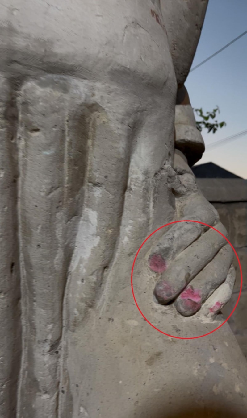 Kayseri'de, Mimar Sinan'ın doğup büyüdüğü Ağırnas Mahallesi'nde heykeli tahrip edilerek tırnaklarına oje sürüldü.