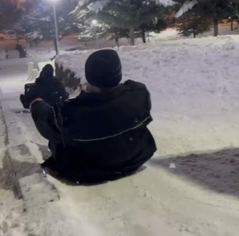 Paylaşımda, “Melikgazi ilçesi Necmettin Erbakan Parkı civarında devriye görevi yürüten ekiplerimiz, kar yağışının etkisini sürdürdüğü bölgede gençler tarafından kar topu oyununa davet edilmiştir.