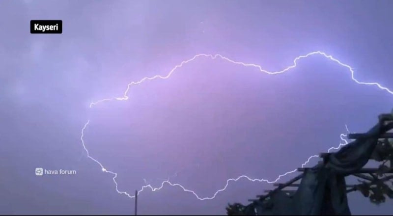 Türkiye haritasına benzeyen şimşek