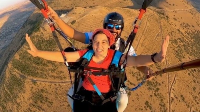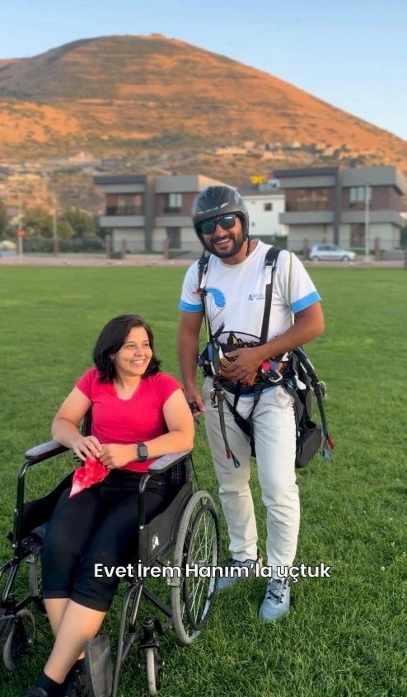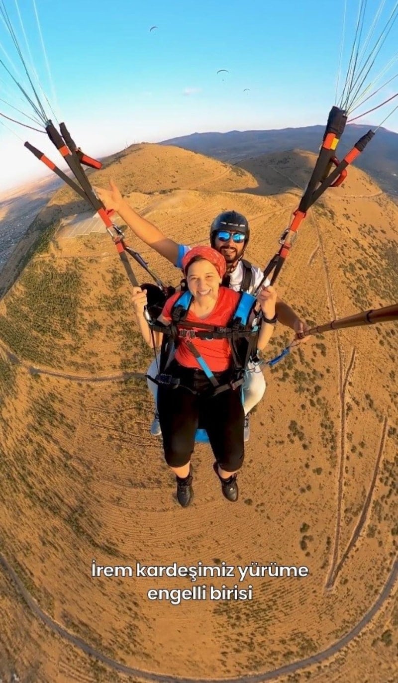 Kayseri’de yaşayan 36 yaşındaki İrem, çocukluk çağında geçirdiği rahatsızlık nedeniyle yürüyememesine rağmen, uzun süredir kurduğu paraşütle uçma hayalini gerçekleştirdi.