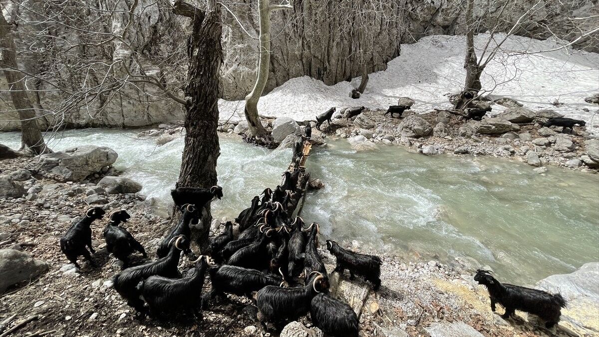 Özellikle köprüden geçmekte zorlanan oğlakları kucaklarına alarak karşıya geçiren besiciler, sürülerini 2 günlük yolculuğun ardından Tahtacık Yaylası'na ulaştırıyor.