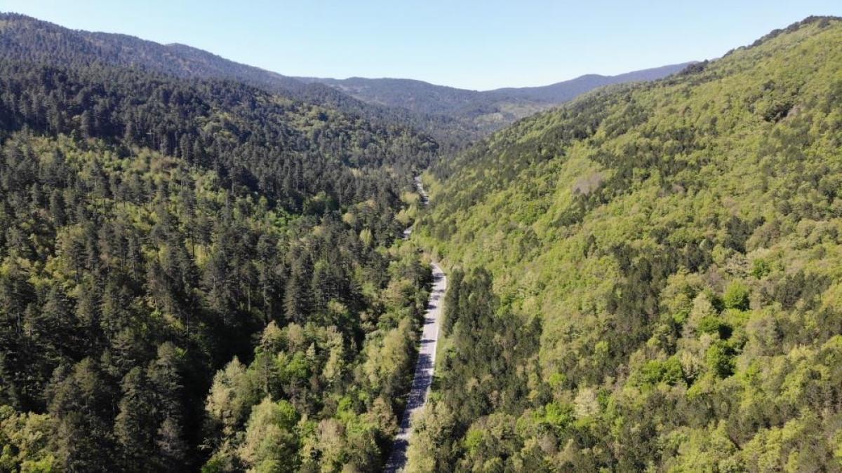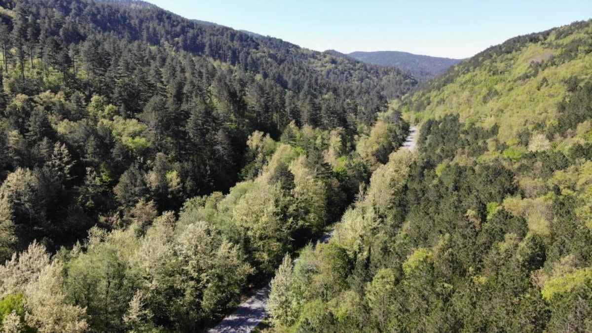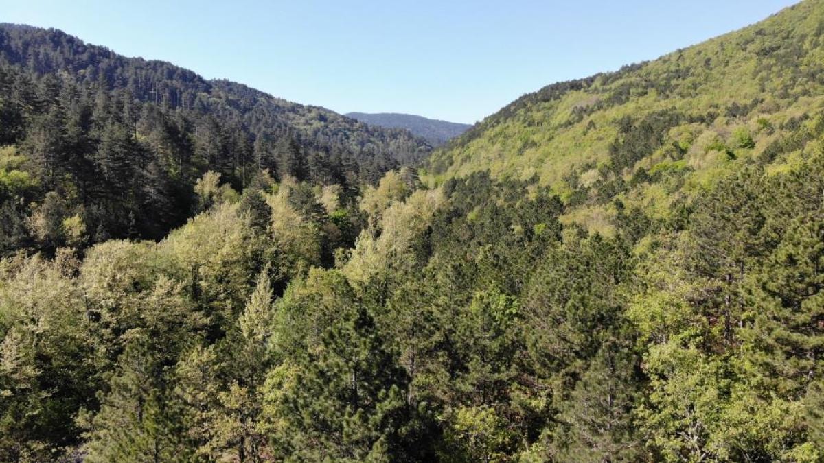Yeşilin binbir tonuna ev sahipliği yapan Kaz Dağları'nın güzelliği, drone ile görüntülendi.