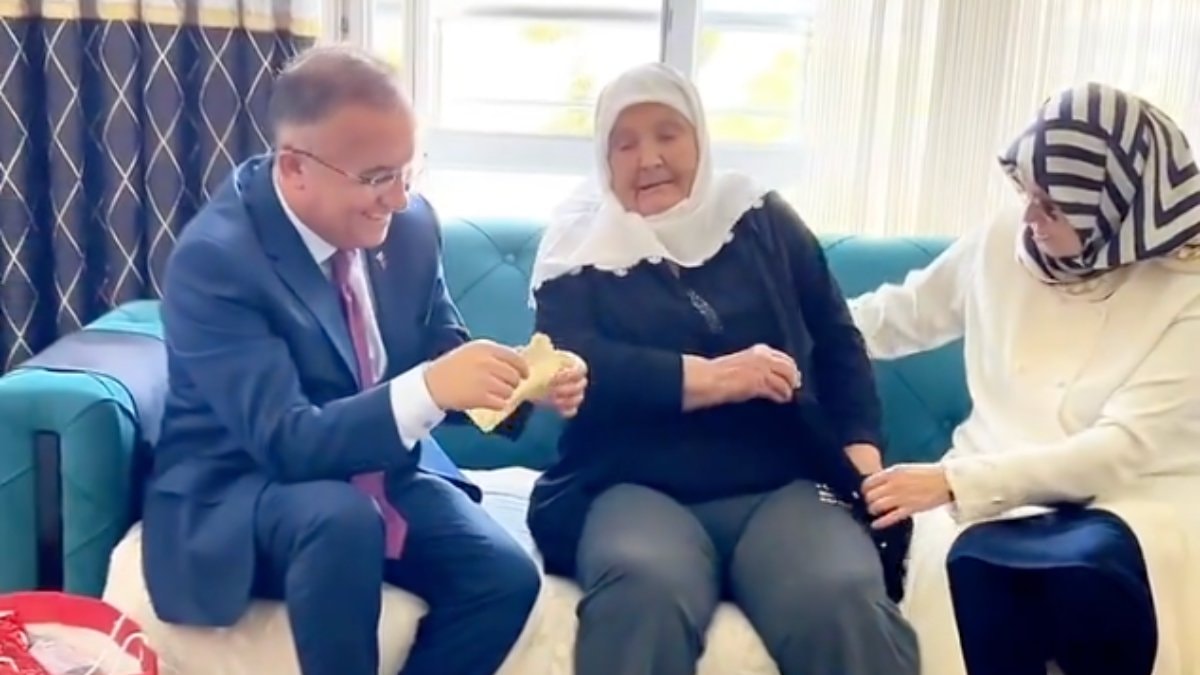 Hediyelerle birlikte Nazmiye Teyze'nin çocukları ve torunlarıyla yaşadığı eve giden Çeber, el öptü ve samimi bir sohbete daldı.