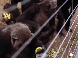 Kafesten kurtarılan şempanzeler iki ayak üstünde yürüyor