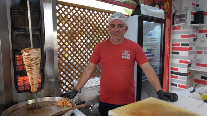 Deveciler Mahallesi Murtaza Caddesi'nde 35 liraya döner satan Ali Karabalık, fiyat artışlarına rağmen uygun fiyatla halka hizmet etmeye devam ettiğini söyledi.