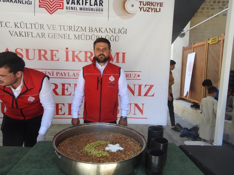 Cuma namazı sonrası vatandaşlara aşure ikramı yapıldı, Vali Şahin de aşure dağıttı.