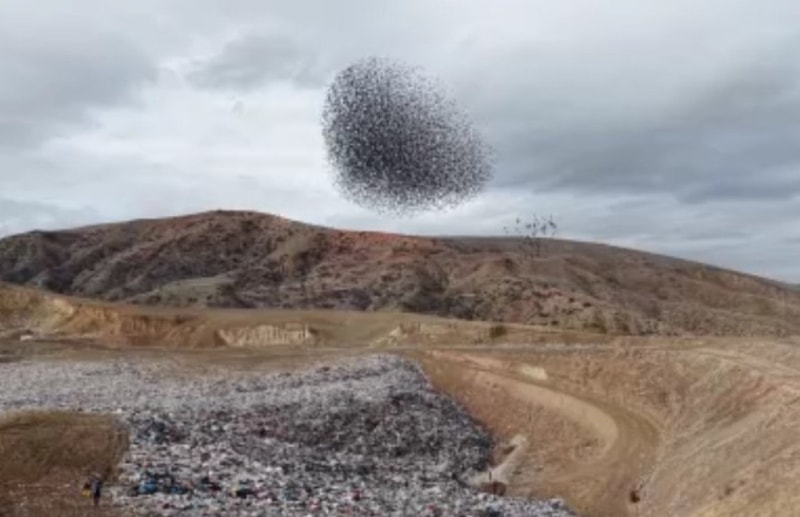Özellikle Katı Atık Depolama Tesisi çevresinde yoğunlaşan sığırcık sürüsü, uyum içinde gerçekleştirdiği manevralarla dikkat çekti. Kuşların toplu halde yaptığı ani dönüşler, gökyüzünde görsel bir hareketlilik oluşturdu.