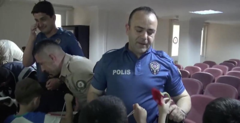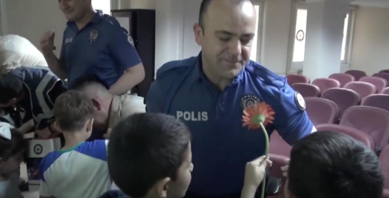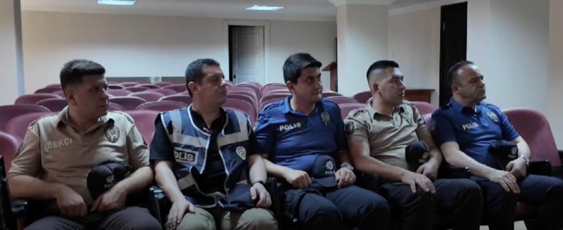 Hizmet içi eğitim adı altında Polis Memuru Ahmet Şentürk, Ergüven Altuntaş, Özgür Akış ile Bekçi Alican Arık ve Kerem Yaldız’a çocuklarının yer aldığı videoyu izletildi.