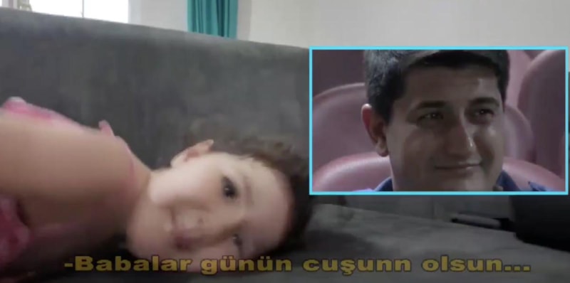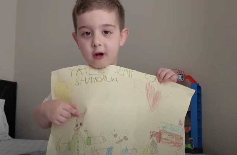 Videoda bir erkek çocuğu babası için yaptığı resmi gösterirken resmin üzerinde "Tatlış seni çok seviyorum." yazdığı görüldü. Erkek çocuk çizimdeki babasını, Atatürk gibi çizdiğini de ekledi.