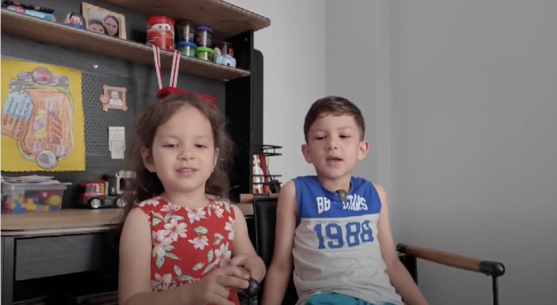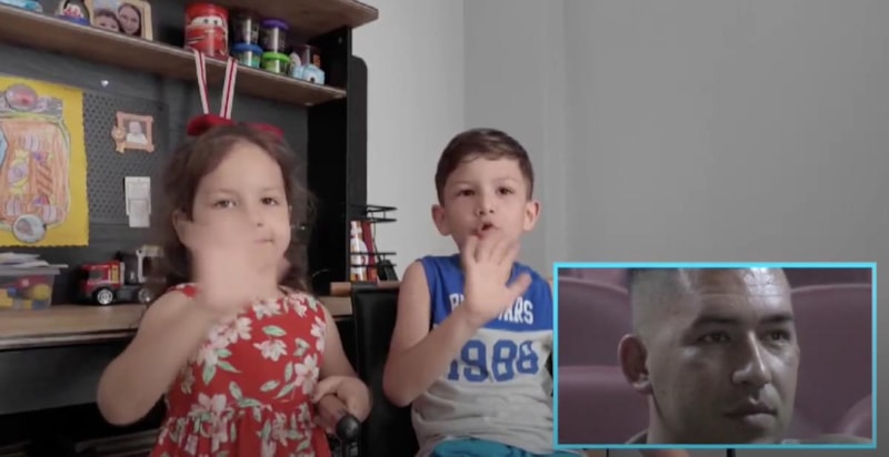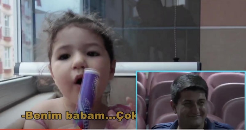 Görüntülerdeki çocuklar, babaları ile yaptıkları oyunları anlatmaya başladı. Top oynadıklarını, logo ile çiftlik kurduklarını, bebekleriyle oynadıklarını anlatırken, içlerinden birisi "Buraya gel!" diye seslendi.