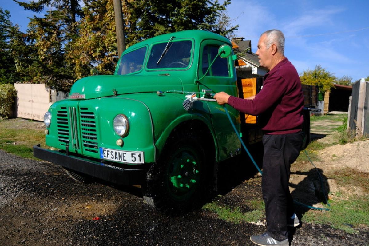 Kırklareli'nin Lüleburgaz ilçesinde yaşayan 71 yaşındaki Ahmet Hamdi Toraman, baba yadigarı 1951 model Austin marka kamyonuna özenle bakıyor.