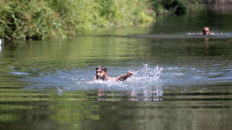 Sıcak havaların etkisini gösterdiği kentte vatandaşlar ağaç gölgeleri, yeşil alanlar ve kapalı alanlarda vakit geçirirken derede serinlemeye çalışan bir kişi sıcaktan bunalıma girdiklerini ifade etti.