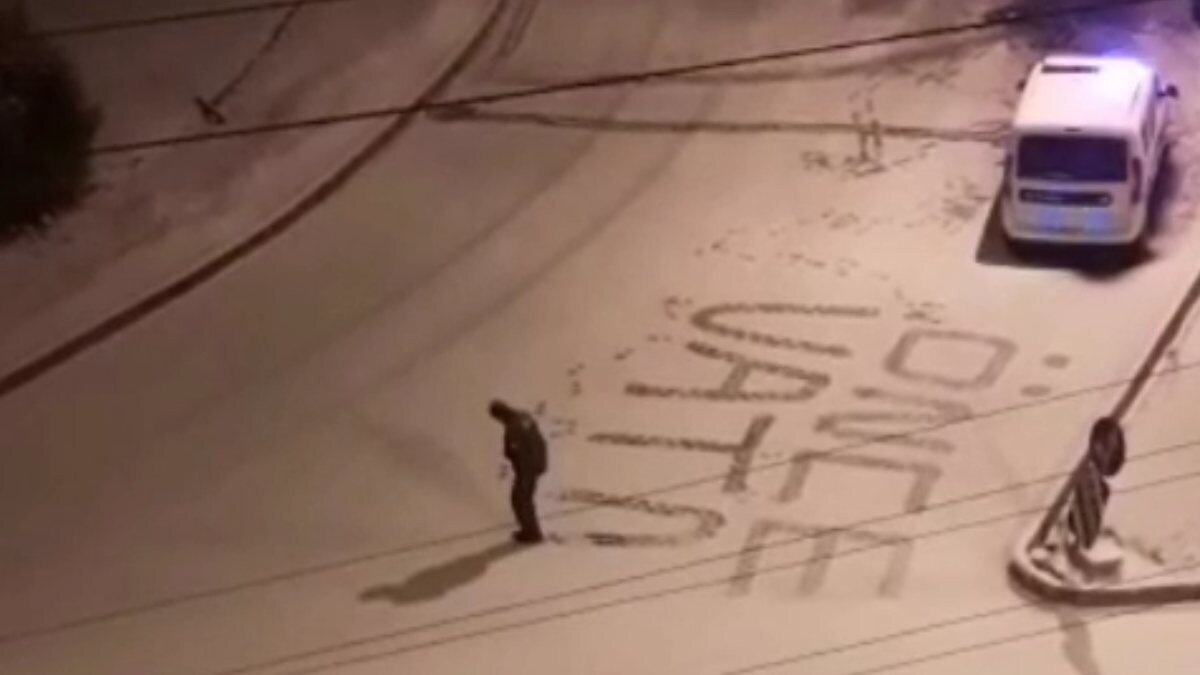 Görevli olduğu basın anıtı mevkisinde aracından çıkan ve karla kaplı yola ‘Önce Vatan’ yazan polis memuru ise bir vatandaşın cep telefonu kamerasına yansıdı.