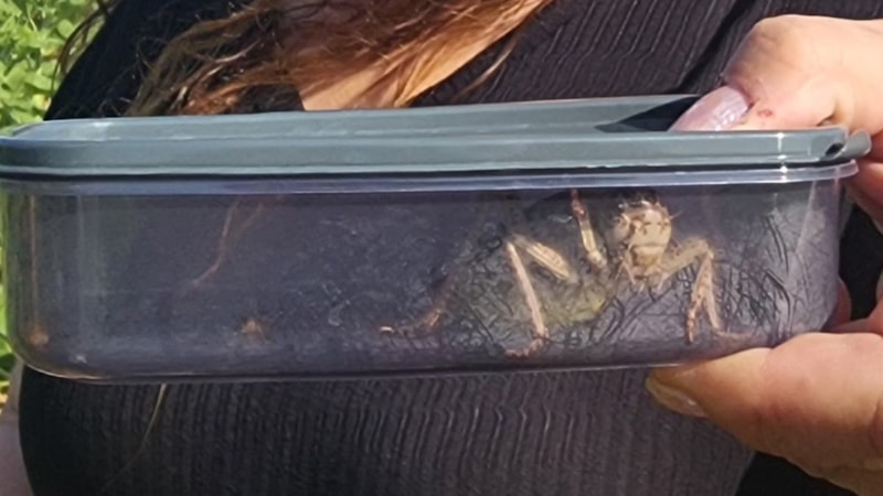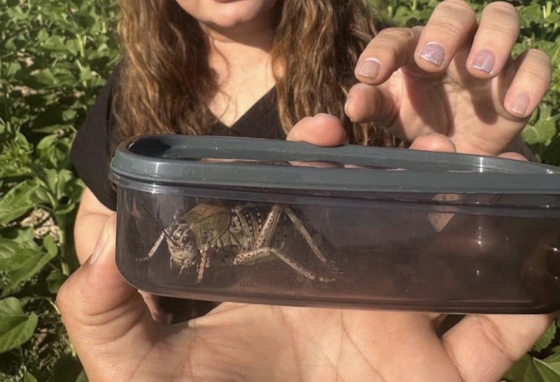 Dr. Zehra Tozlu açıklamasında, "Kırşehir'de ilk kez bulunan bir böcek. 'Yamyam tombul çekirge' olarak biliniyor. Vatandaş ihbarıyla geldik. Şehirde ilk kez büyük bir çekirge görüldü" dedi.