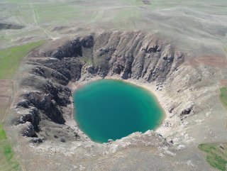 Sivas’da bulunan ve turkuaz rengiyle dikkatleri üzerine çeken doğal oluşumlu göl, görenleri kendine hayran bırakıyor.