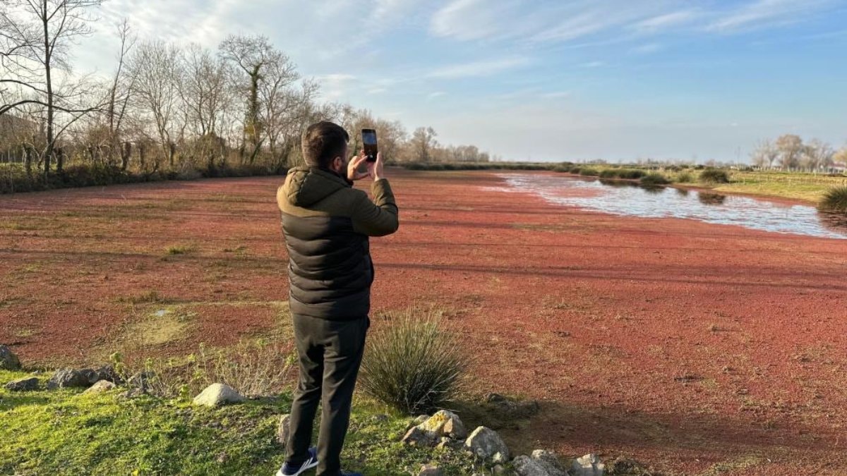 Eğrelti otunun arasında kano yapanlar havandan görüntülenirken, kızıla bürünen Kızılırmak Deltası’na giden vatandaşlar, böyle bir manzara ile ilk defa karşılaştıklarını söyledi.