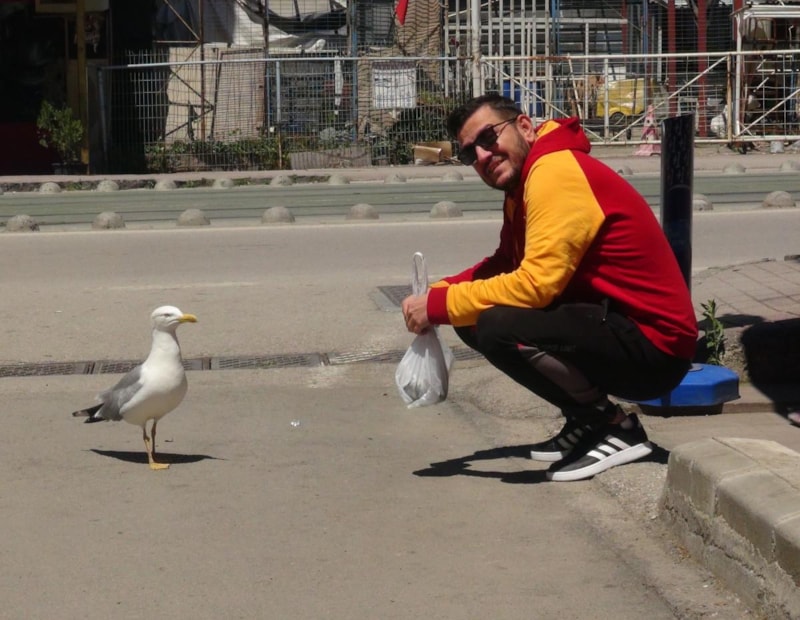 "Ben nereye gitsem peşimde geliyor. İnsanlar kedi, köpek besler ama benim arkamdan martı geliyor. Alıverişe giderken de peşimden geliyor, herkes de bakıyor. Her gelişinde bir paket ciğerin yarısını götürüyor."