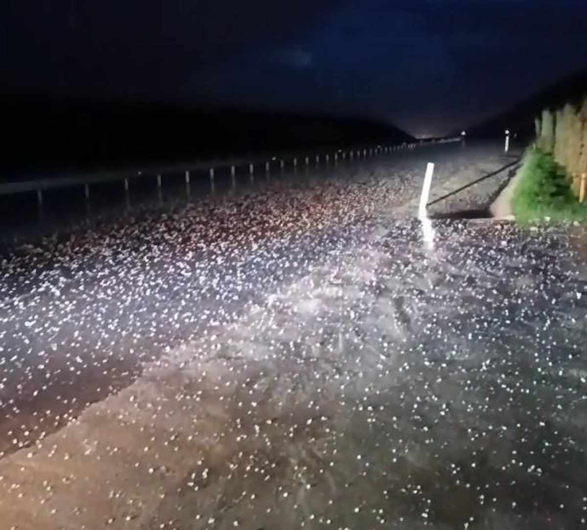 Akşam saatlerinde ise fırtına, şimşek çakması ve dolu hayatı olumsuz etkiledi. Nohut büyüklüğündeki dolu bazı bölgeleri beyaza bürüdü.