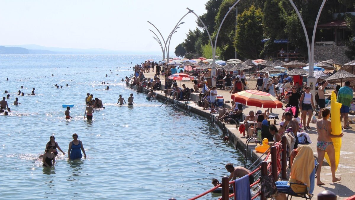 Kocaeli'nin Kandıra ilçesine gelen tatilciler, deniz ve güneşin tadını çıkardı.
