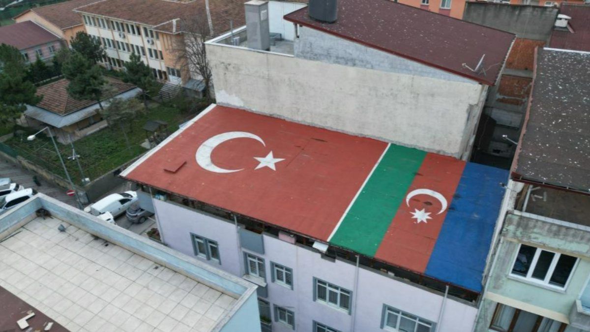 Kocaeli'de Türk ve Azerbaycan bayraklı çatı 3 ay sürdü VİDEO