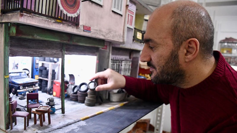 Kocaelili esnaf İsmail Kuş, "diorama" tekniğiyle en ince ayrıntısına kadar düşünerek yaptığı 20 minyatür çalışmayla evinin bir odasında gerçeğini aratmayan bir mahalle inşa etti.
