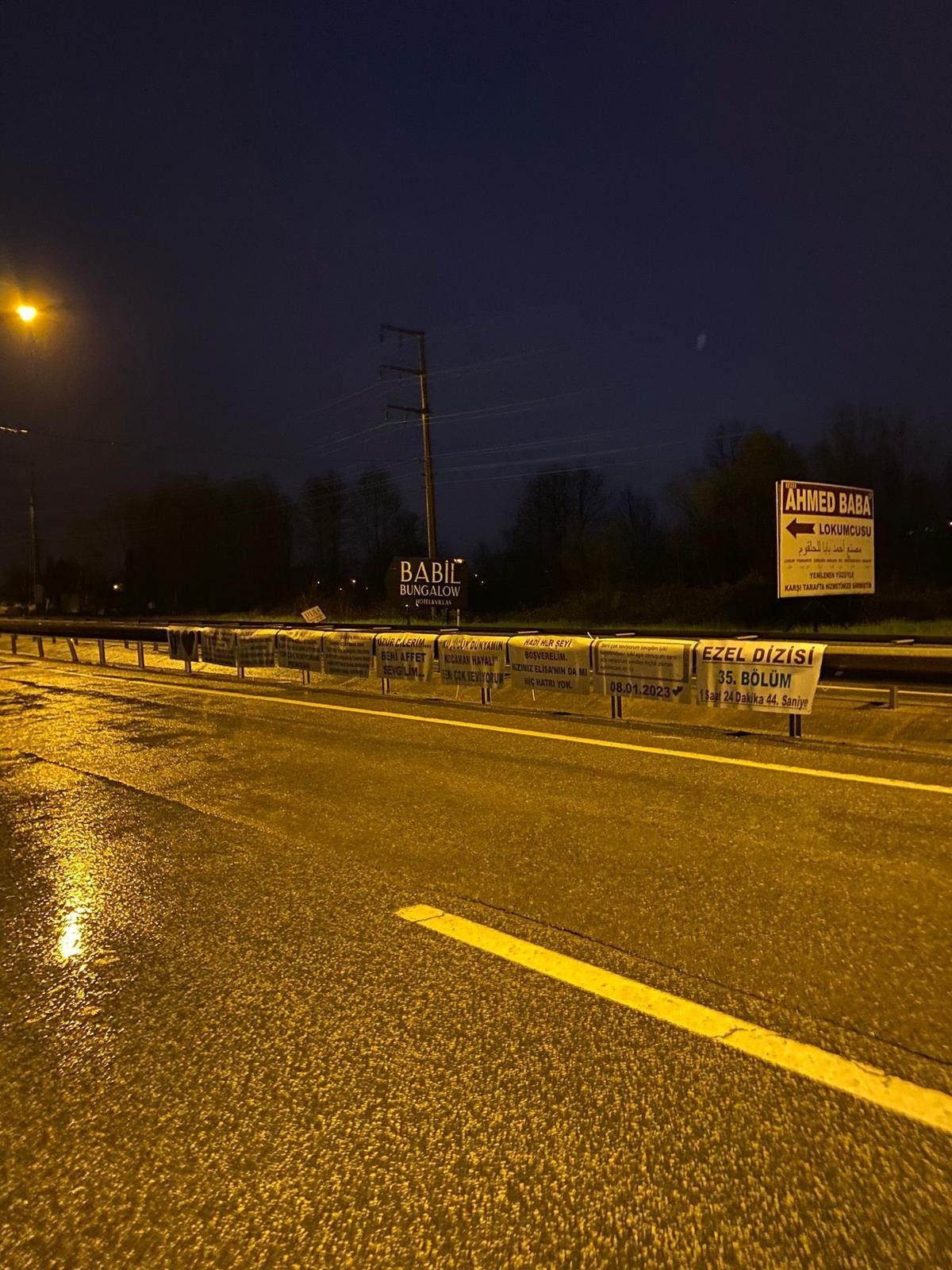 Alışılmışın dışındaki manzara, arabasıyla caddeden geçen bir vatandaş tarafından görüntülendi. Bir süre sonra caddedeki tüm pankartların kaldırıldığı öğrenildi.