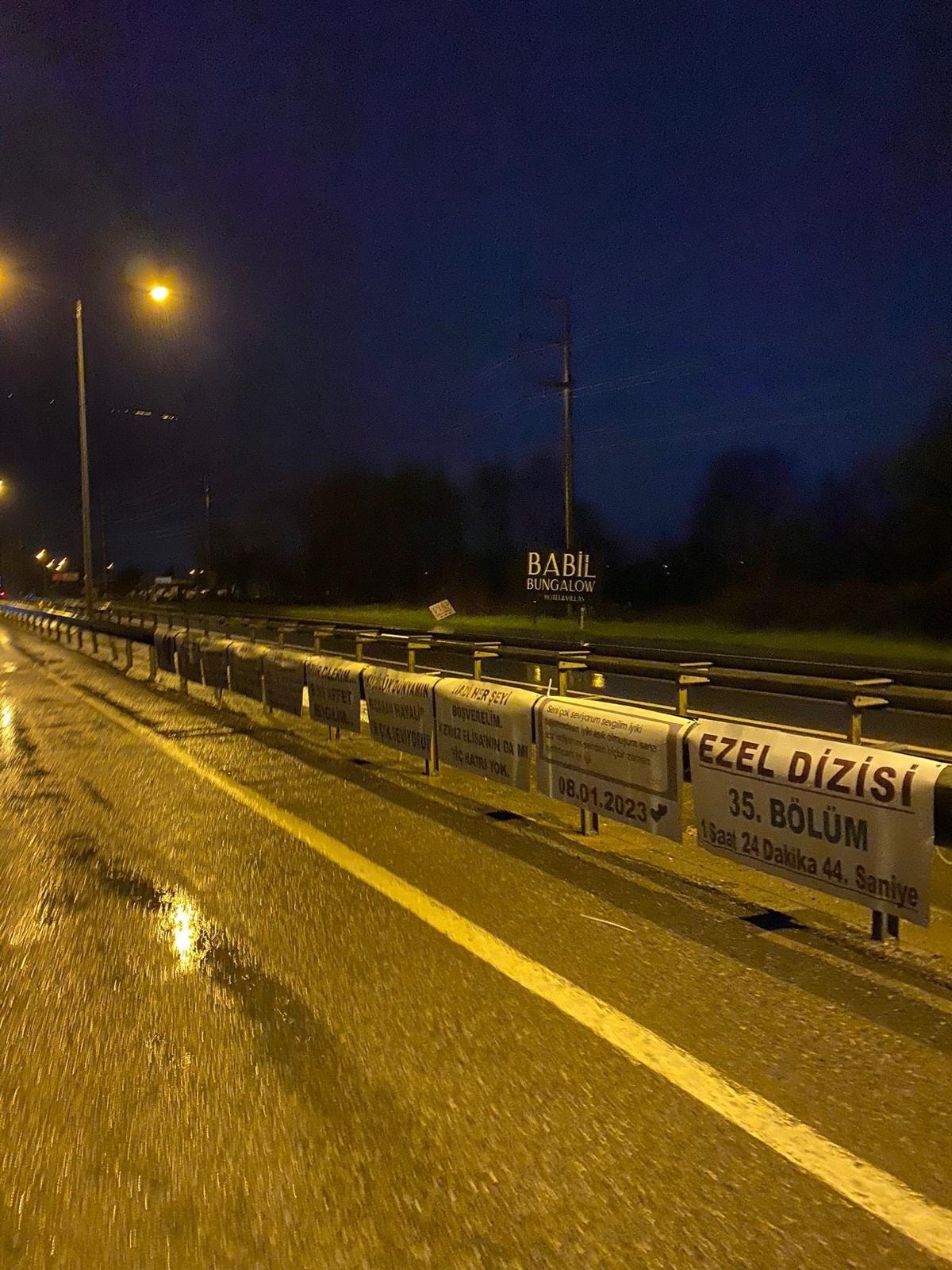 Öte yandan, pankartlardan birinde bir dönem Türk televizyonlarının fenomen dizisi Ezel’in 35. bölüm 1 saat 24 dakika 44. saniyesine gönderme yapılması da dikkati çekti.