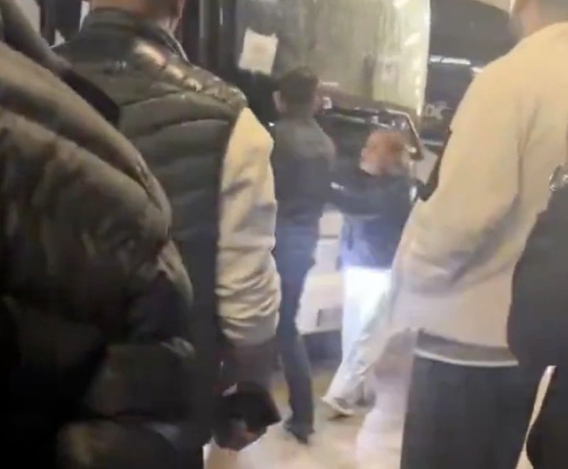 Etraftaki yolcular ve görevliler ise olayı şaşkınlıkla izlemeye devam etti.
