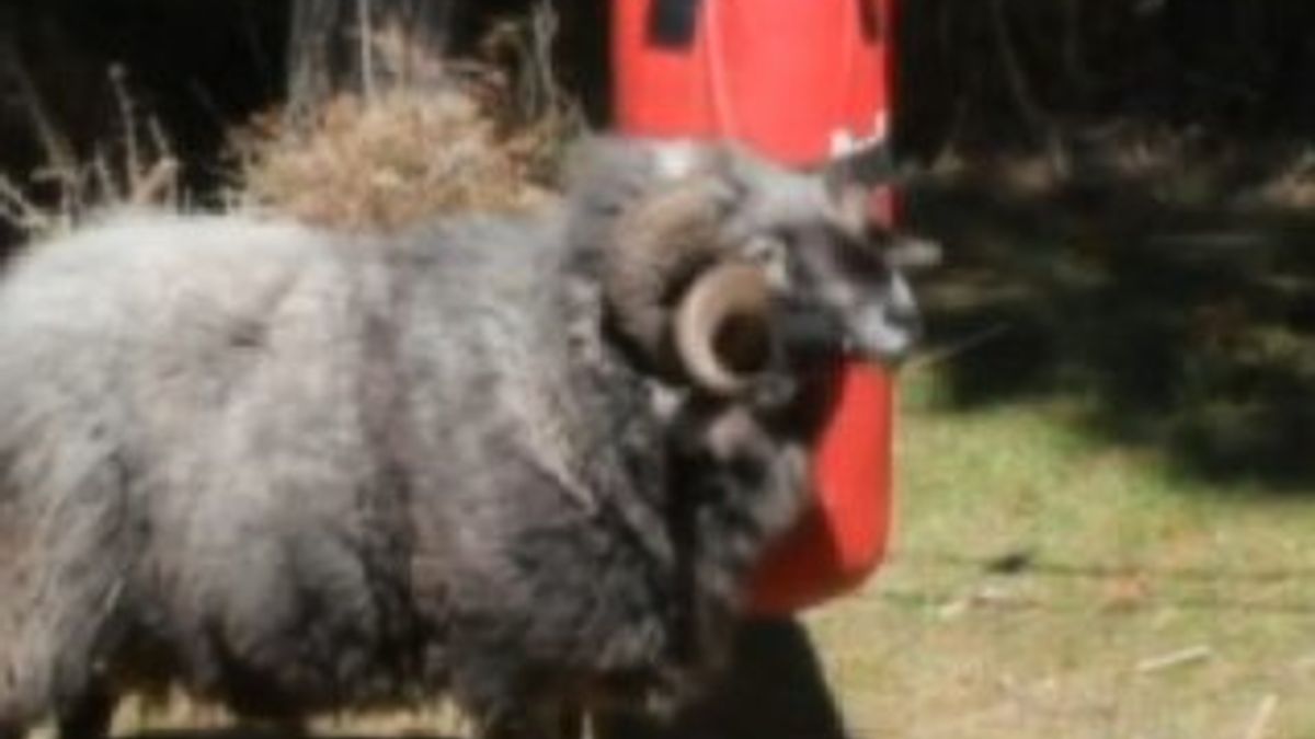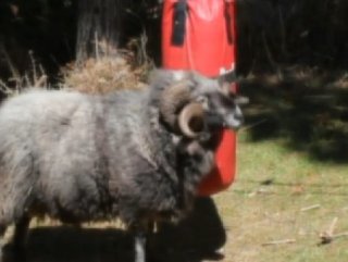 Görüntülerde, kızgın koç, ağaca bağlanmış kum torbasına yılların boksörlerine taş çıkartır cinsten vuruşlar yaptı. Kum torbasının dönüp dolaşıp kendisine çarpmasına aldırış etmeyen koç, gösterdiği sabrıyla kum torbasını koparmayı başardı.