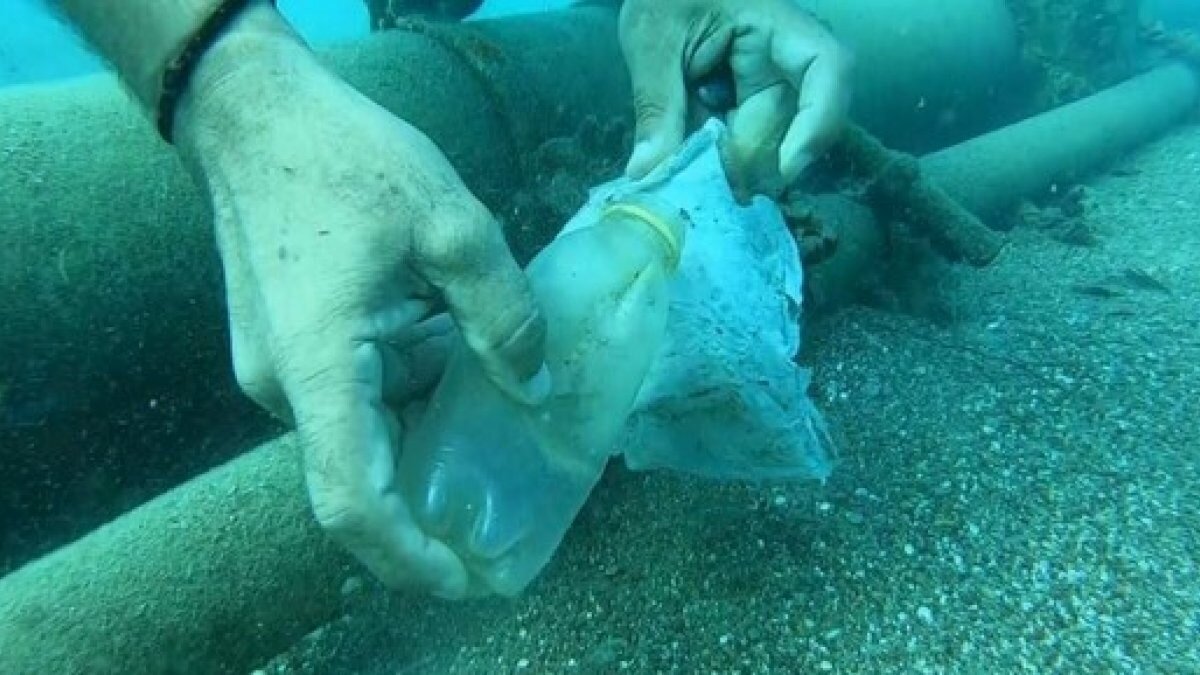 15 metre derinliğe kadar yaklaşık 15 dakikalık dalış gerçekleştiren Mehmet Gökoğlu, iki poşet çöp ve olta takımları ile dönüş yaptı. Gökoğlu’nun çöpleri denizden çıkarmasına kıyıdaki amatör balıkçılarda yardım etti. Çöpler içinde daha çok plastik atıklar, maske, ıslak mendil gibi atıkların olduğu dikkat çekti. Gökoğlu, su altındaki plastik atıkları görüntülediği ve topladığı anlar su altı kamerasına yansıdı.