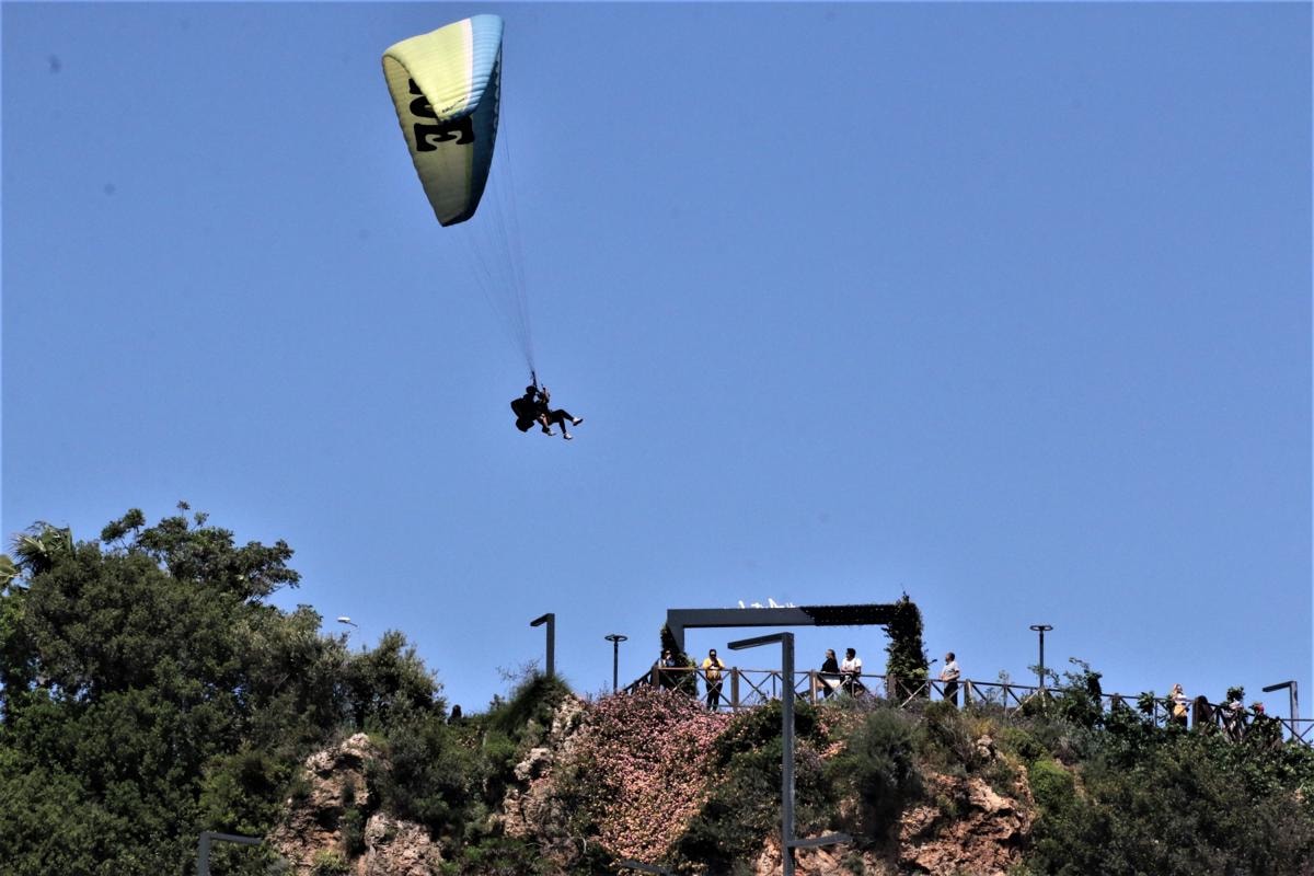 Öte yandan, çok sayıda yamaç paraşütçüsünün ambulans ve sahil güvenlik helikopter güzergahı olması nedeniyle uçuşa yasak olan varyant falezler üzerinde uçuş yaptıkları kameralara yansıdı.