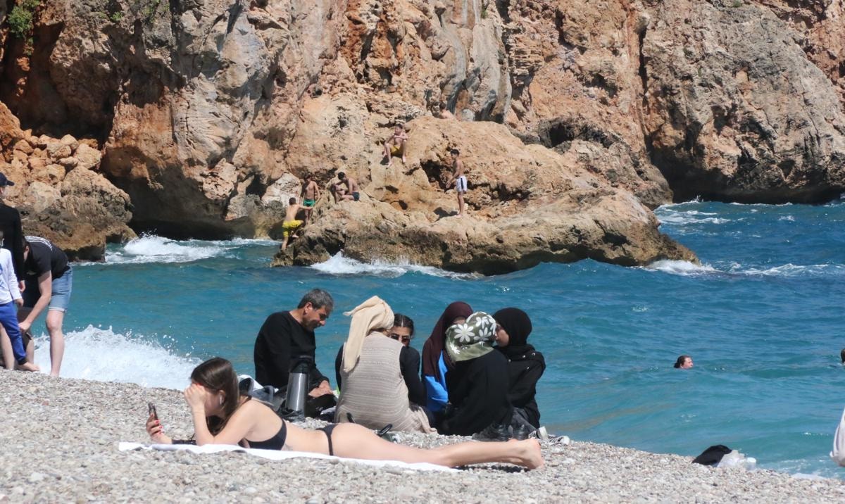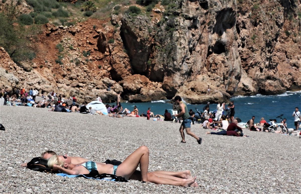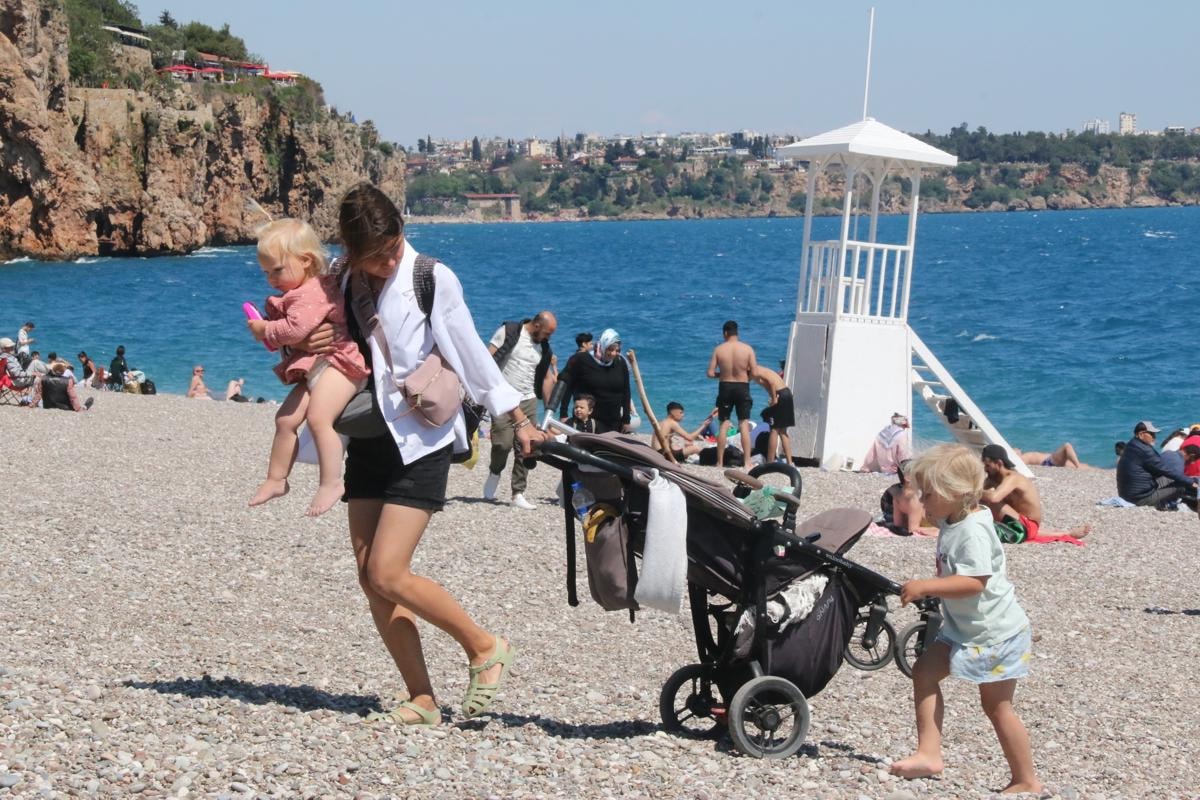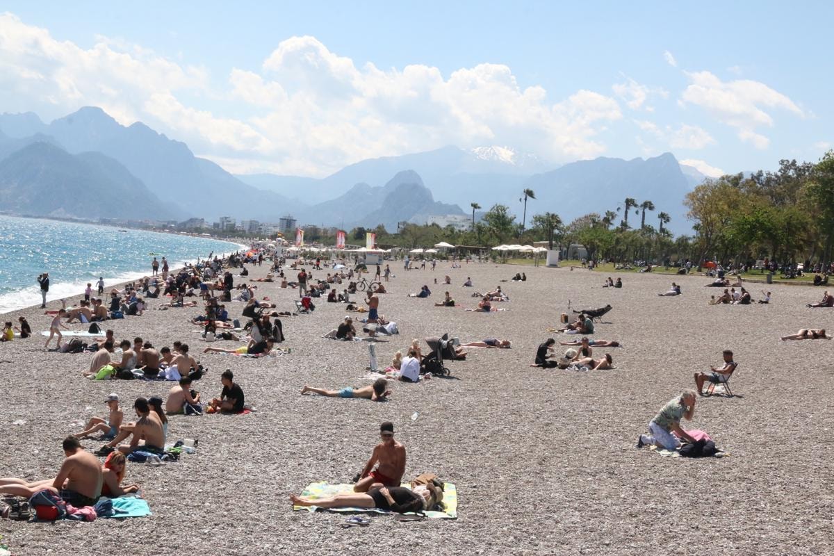 Hava sıcaklığının 23 derece olarak ölçüldüğü Antalya’da tatilciler ve yerli halkın adresi dünyaca ünlü Konyaaltı sahili oldu.
