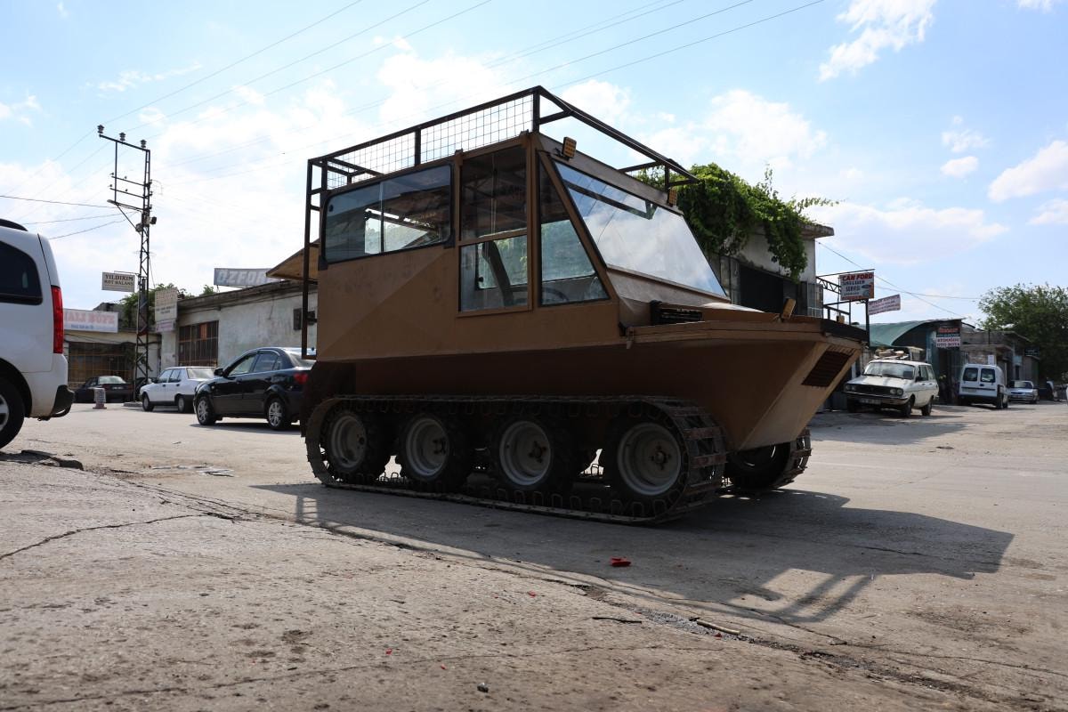 Ekipler, 1 saat 45 dakika içerisinde de gölün kıyısına gelerek paletli bir araçla bize ulaştı. Değişik bir araçtı, paletli 8 X 8 araç dikkatimizi çekmişti. Onu orada görünce dedik 'buraya gelebilecek tek araç bu' orada biraz aracı inceledik. Daha sonra dükkana gelince de arkadaşlarla sohbet esnasında 'böyle bir araç yapabiliriz' diye konuştuk. Sonrasında böyle bir araç yapmaya karar verdik. Kamp yaptığımız arkadaşlarımızla 10 kişilik bir grubuz.