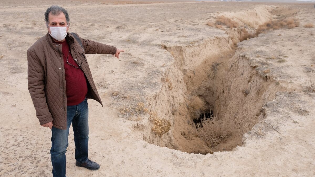 Türkiye'nin rüzgar erozyonuna maruz kalan bölgelerinin başında gelen ve yaklaşık 50 bin kişilik nüfusa sahip Konya’nın Karapınar ilçesinde, yer altı sularının çekilip, toprağın göçmesiyle meydana gelen obruklar, bölge halkı için tehdit oluşturmaya devam ediyor.
