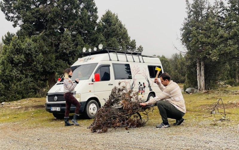 Çocukluğumuzdan beri karavan fikri vardı ama hep uzak ve ulaşılmaz görünüyordu. Düğünümüzde gelin arabası olarak kiraladığımız karavanla yaptığımız kısa tur, bu tutkumuzu daha da alevlendirdi. Tatilden döner dönmez araç arayışına girdik ve uygun bir minibüs bulduk. Ertesi gün işimden istifa ettim. İş yerindeki sorunlarımı çözemedim, bu yüzden bu kararı aldım. Minibüsü karavana çevirmek için bir fırsat olarak gördük. Eşimi de istifaya ikna ettim; ‘Birlikte hızlıca karavanı tamamlayalım, tura çıkalım, sonra yeni işler ararız’ dedim. Aradan üç yıl geçti ve hala yeni bir iş bulamadık.