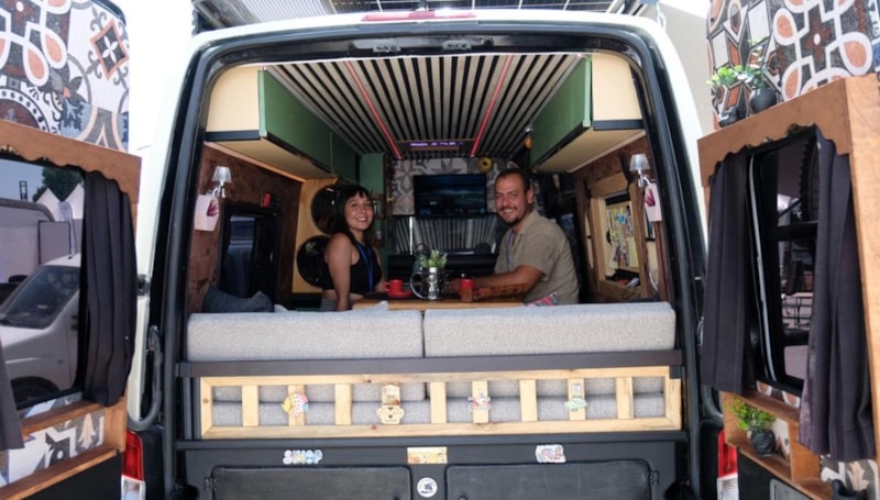 Üç yıl önce evlenen ziraat mühendisi Ömer Türkoğlu ile okul öncesi öğretmeni Büşra Türkoğlu, düğün sonrası işlerinden ayrılıp takılarını satarak aldıkları minibüsü karavana dönüştürdü ve o günden beri Türkiye’yi geziyor.