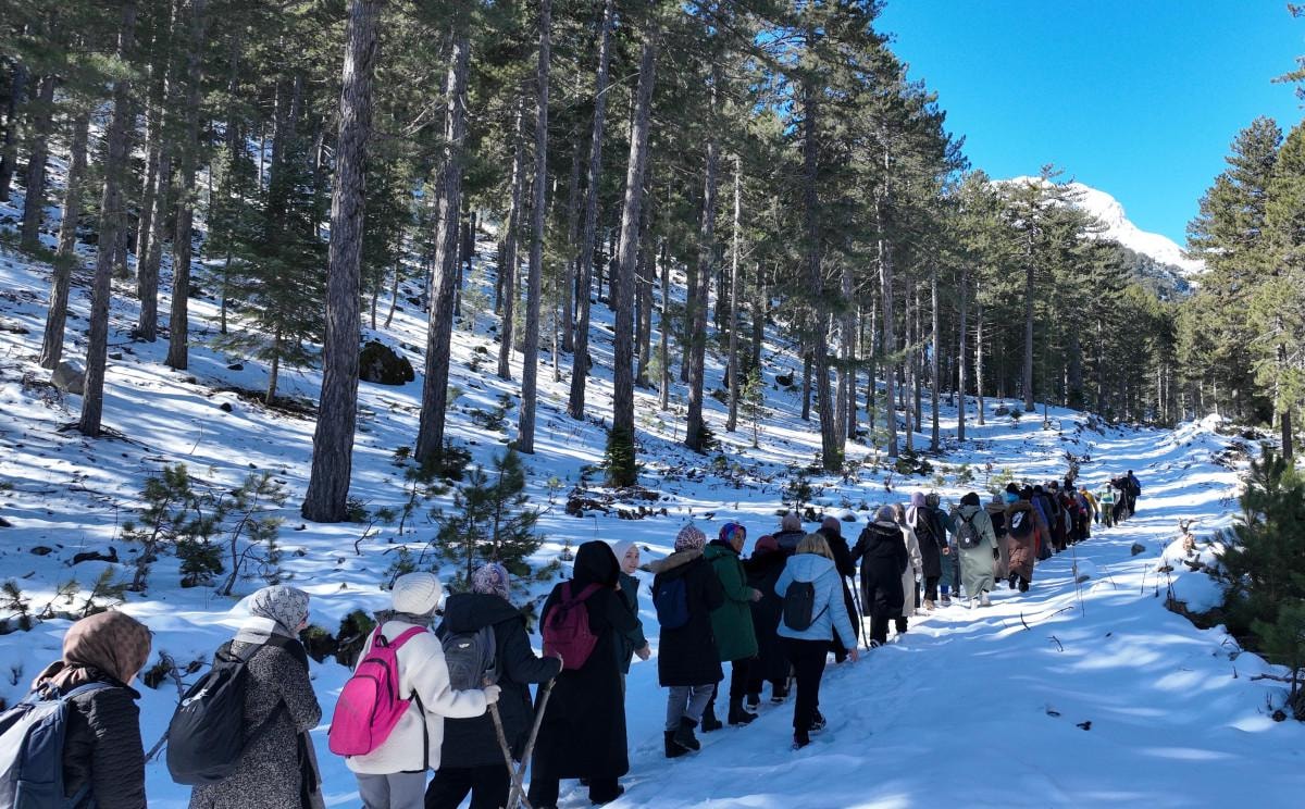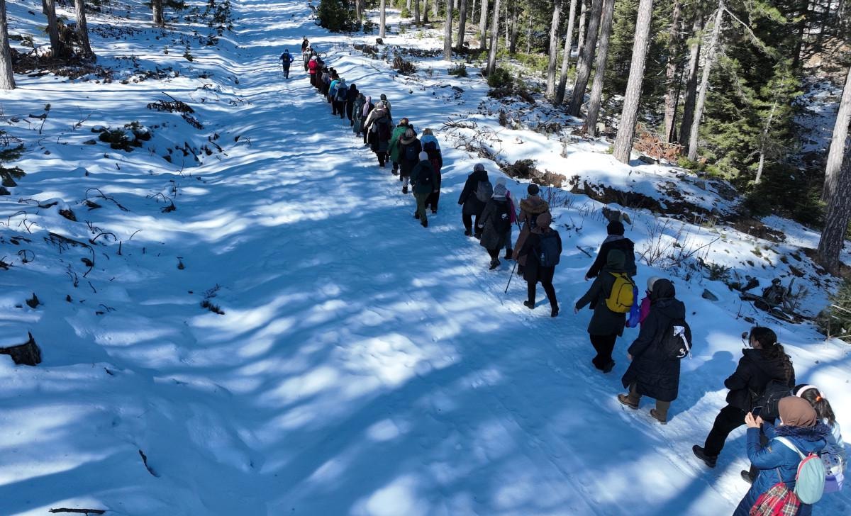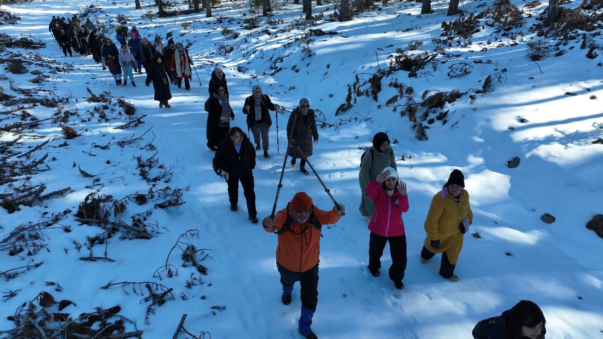 Düzenlenen bir organizasyonda 267 kadın, Anamas Dağı'nın Muslu Yaylası'nda kar örtüsü üzerinde yürüdü.