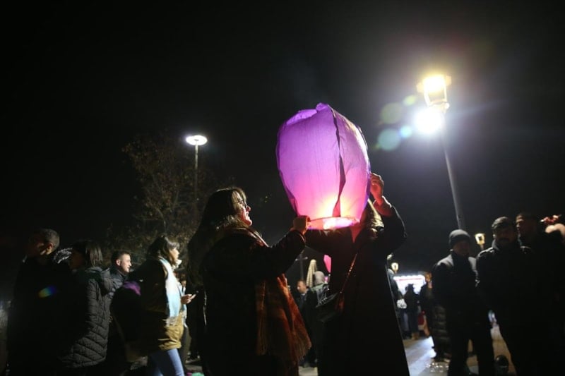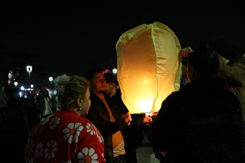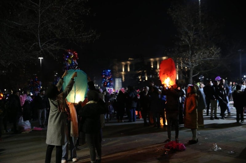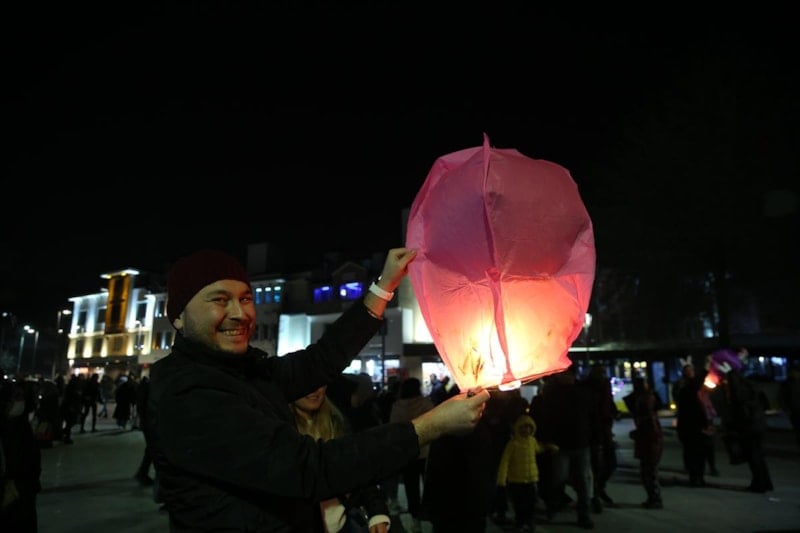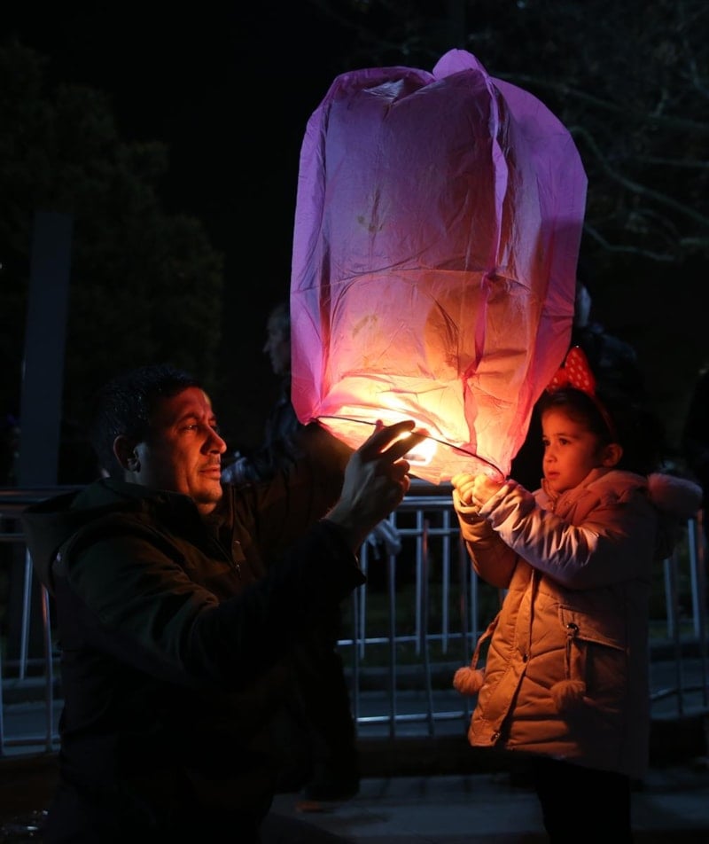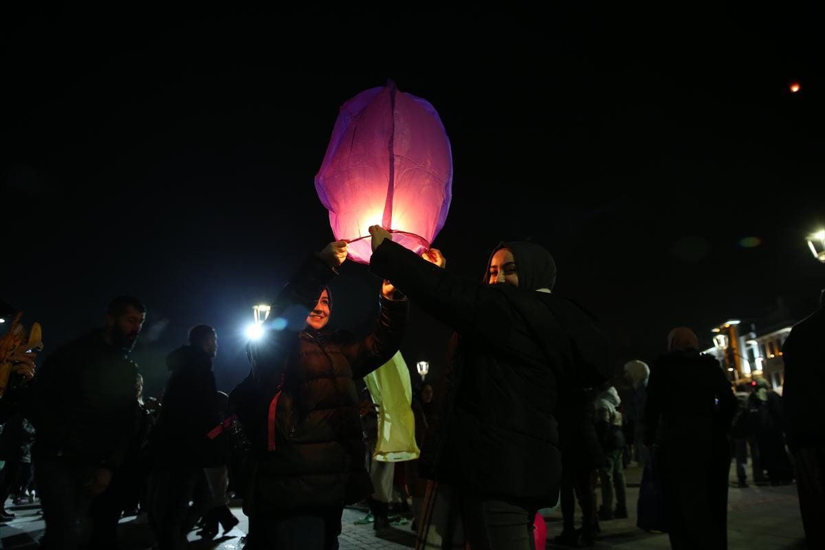 Kılıçarslan Şehir Meydanı'na çocuklarıyla gelen binlerce vatandaş ise yaktıkları fenerleri gökyüzüne uçurdu.
