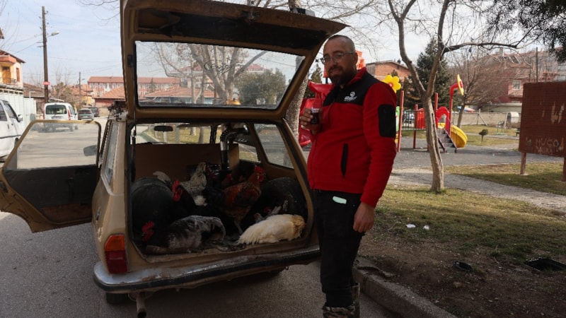 Kasalak, tavukların otomobilde yumurtladığı yumurtalardan memnuniyet oluşunca da tavukları aracında gezdirmeye başladı.