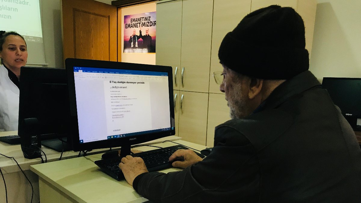 İhsan Bey'e ne için geldiğiniz dediğimde, o da bana ‘benim torunlarım var onlar bilgisayarda çok güzel oyun oynuyorlar, internete giriyorlar ve ben onları sürekli izliyorum. Onlar bana heyecan veriyor. Bunu öğrenip bilgi edinip, torunlarımla birlikte onlarla birlikte yarış halinde oyun oynamak istiyorum.’ dedi. Tabii ki bu heyecan ve istek beni de çok mutlu etti. İhsan Bey gayet başarılı bir öğrenci. Gençlere baktığımız zaman gençler bazen olayı ciddiye almazken, İhsan Bey o kadar ciddiye alıyor."