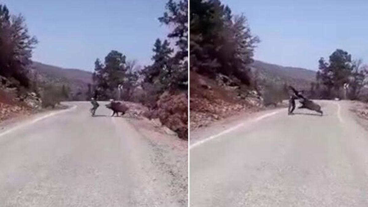 Bir süre domuzla mücadele eden Gümrah, saldırıyı yara almadan atlattı. Domuz da saldırı sonrası bölgeden uzaklaştı.
