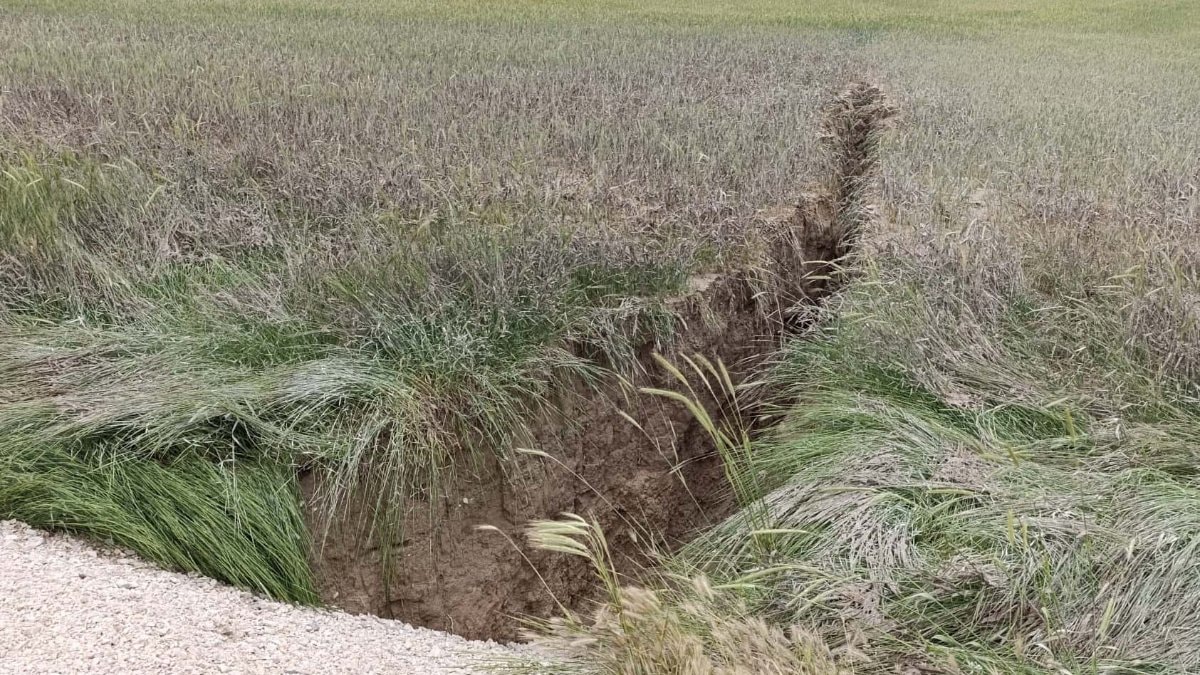 Tilkili Yaylasında 10 dekar buğday tarlamız ve 27 dekar pancar tarlamız var. Her iki tarlanın ortasından da asfalt yol geçiyor. Arazimizde çatlaklıklar vardı. Kuraklık nedeniyle olduğunu düşündüğümüzden önemsemedik. Yoğun yağış sonrası çatlaklıklar büyüyüp, yaklaşık 3-5 metre derinliğinde ve 100 metre uzunluğunda yarık oluştu.