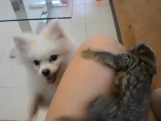 Sevimli hareketleri ve atikliğiyle bilinen lemurun köpekle oynadığı görüntüler izleyenleri güldürdü. American Eskimo cinsi köpeğin, evcil lemurla adeta köşe kapmaca oynadığı görüntülerde lemur kaçarak uzaklaşıyor.