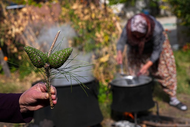 Doğal üretim yöntemleriyle hazırlanan çam kozalağı pekmezi, hem yöre kadınlarının dayanışmasının bir simgesi hem de Türkiye’nin dört bir yanına yayılan geleneksel bir şifa kaynağı olmaya devam ediyor.
