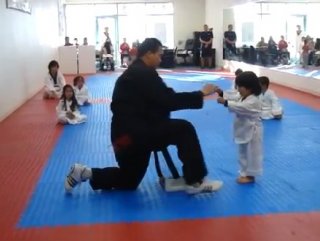ABD'de minik tekvandocu için beyaz kuşak töreni düzenlendi. Kendisine gösterilen hareketleri başarıyla gerçekleştiren küçük tekvandocu beyaz kuşağı almayı hak etti.