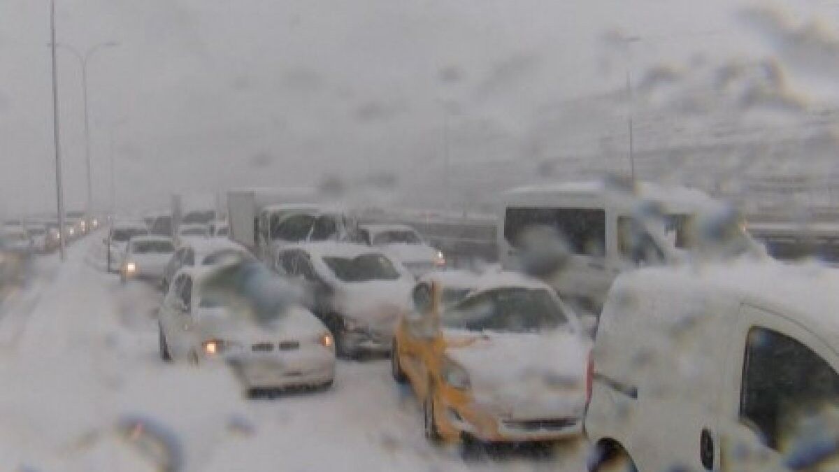 İstanbul'u öğleden sonra etkisi altına alan kar yağışı sebebiyle Küçükçekmece D-100 güney yolu Edirne istikametinde trafik durdu.