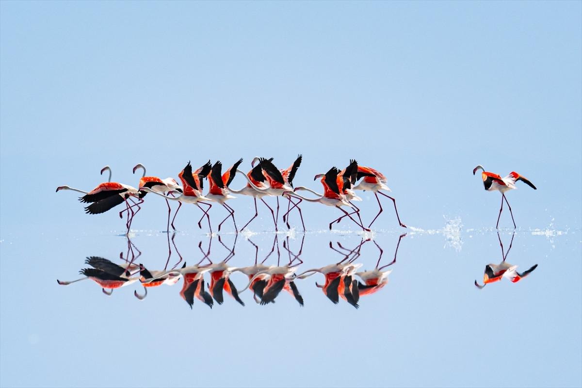 Her şeye rağmen Tuz Gölü üzerinde az sayıda kalan flamingoların görüntüsü hayran bırakıyor.