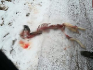 Kurtların parçalayarak telef ettikleri köpekten geriye kemikleri kaldı. Bölge sakinlerinin durumu fark etmeleri üzerine kurt sürüsü, ormanlık alana kaçtı. Köpeğin kime ait olduğu ise araştırılıyor.